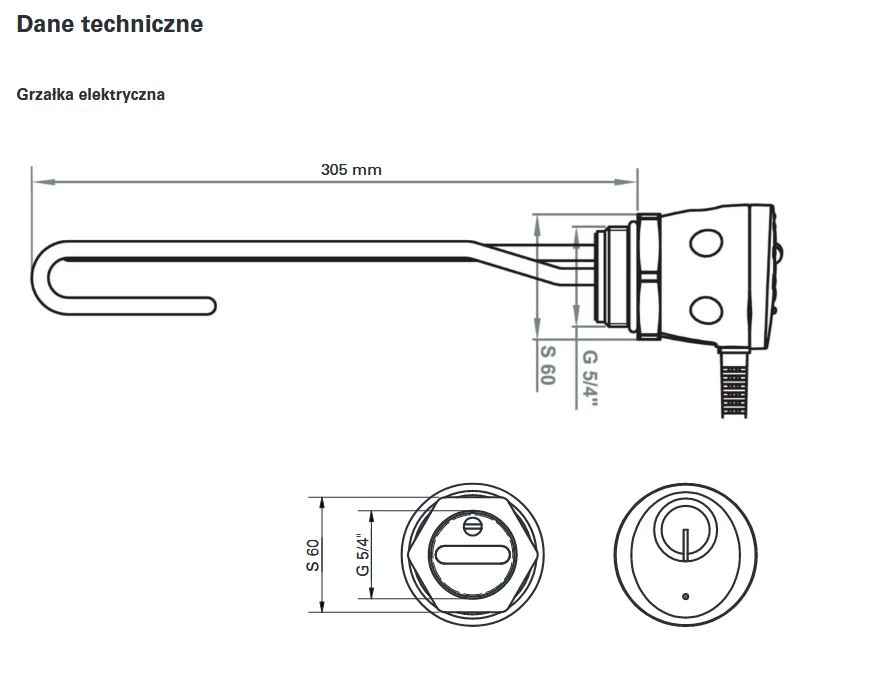Grzałka elektryczna z termostatem o mocy 2,0 kW